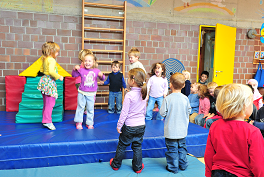 Unsere Bewegungshalle lädt die Kinder zum Turnen und Toben ein